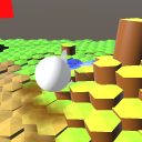 Drag to change the height and roll the ball into the hole!