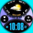 Weather: Main weather icons, available day and night icons. High and Low temperature for the current day, C/F units, current temperature C/F, circular text forecast.