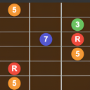 Degree Coloring: Each note's function (Root, 3rd, 5th, etc.) is clearly color-coded, allowing you to quickly understand the role of every note across the neck.