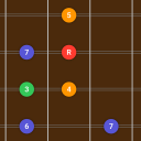 Degree Coloring: Each note's function (Root, 3rd, 5th, etc.) is clearly color-coded, allowing you to quickly understand the role of every note across the neck.