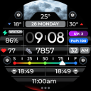 Sporty digital weather watch face with customizable features for...