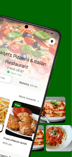 - Earn free food with rewards points.