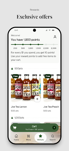 - Earn free food with rewards points.