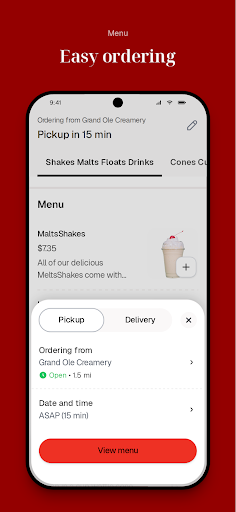 - Ordering directly from the Grand Ole Creamery app saves you money (including any delivery fees).
