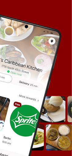 - Earn free food with rewards points.