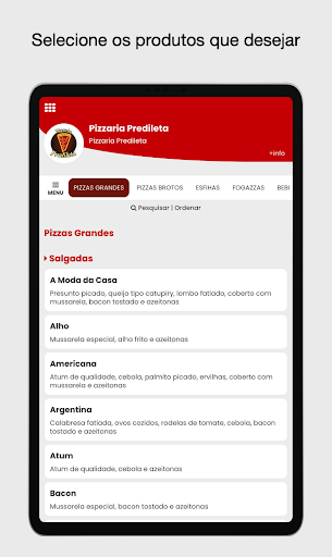 Place your order through the Pizzaria Predileta app!