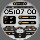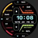 1. Top: Phone, Messages, Settings, Heart Rate, Battery, Custom Data, Calories and Percentage Progress