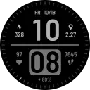 Stay on top of your day with this bold, data-packed digital watch face designed for maximum readability and versatility. It displays the essentials at a glance—time, steps, distance, calories, and heart rate—alongside current weather conditions. Since the Watch Face Format does not provide access to direct calorie or distance data, these values are smart estimations based on your step count and the average user profile. You’ll also enjoy full 12/24-hour support and automatic switching between kilometers and miles depending on whether your phone is set to Celsius or Fahrenheit.