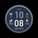 This watch face offers a clean, balanced layout designed for effortless readability. The bold digital time is centered between four key data points: heart rate, calories burned, step count, and distance. A dedicated battery indicator and a clear date display ensure you have all your essential daily information available at a single glance.Customization is simple and versatile, featuring 30 color variations to suit your personal style. To make the interface truly yours, you can replace the default side data with 4 optional circular complications. This allows you to prioritize the information that matters most, from weather updates to upcoming calendar events, all within a sophisticated, multi-ring design.