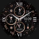 Elegant, classic hybrid watch face for Wear OS with black marble, bronze accents, and Roman numerals.