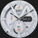 Modern, white analog watch face for Wear OS smartwatch.