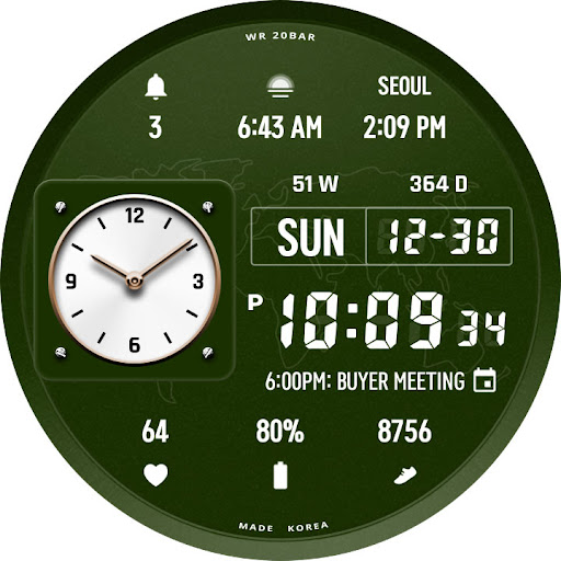 This watch face supports all WearOS 5 devices with API level 34 or higher, such as Samsung Galaxy Watch 4, 5, 6, 7, 8, Pixel Watch, etc.+++++++++++++++++++++++++++++++++++++++++++++++