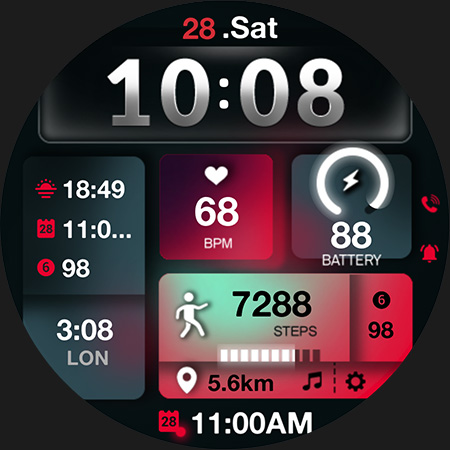 COMPATIBILITY: This watch face is designed for Wear OS devices (API level 30+) including Samsung Galaxy Watch 4, 5, 6, 7, Ultra, Google Pixel Watch, and other compatible smartwatches.