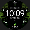 Tropical and vibrant, this digital watch face for Wear OS features lush green leaves set against a dark background. Ideal for those who want to bring a touch of nature and freshness to their smartwatch.Installation Guide: https://www.monkeysdream.com/install-watch-face-wear-os/