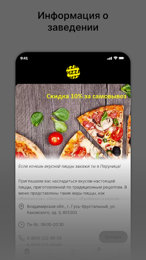 Удобная доставка: хотите насладиться нашей пиццей дома? Закажите с помощью нашего приложения и получите ее прямо к двери!