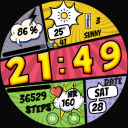 Unleash your inner artist with Comic Vibe, a playful digital watch face inspired by the colorful world of comic books!⚙️ Main Features: