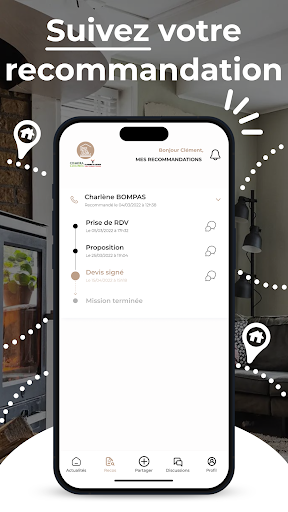 Cette application permet de connecter vos proches avec des professionnels de confiance et de suivre l'avancée de chaque recommandation, tout en étant rémunéré pour votre aide.